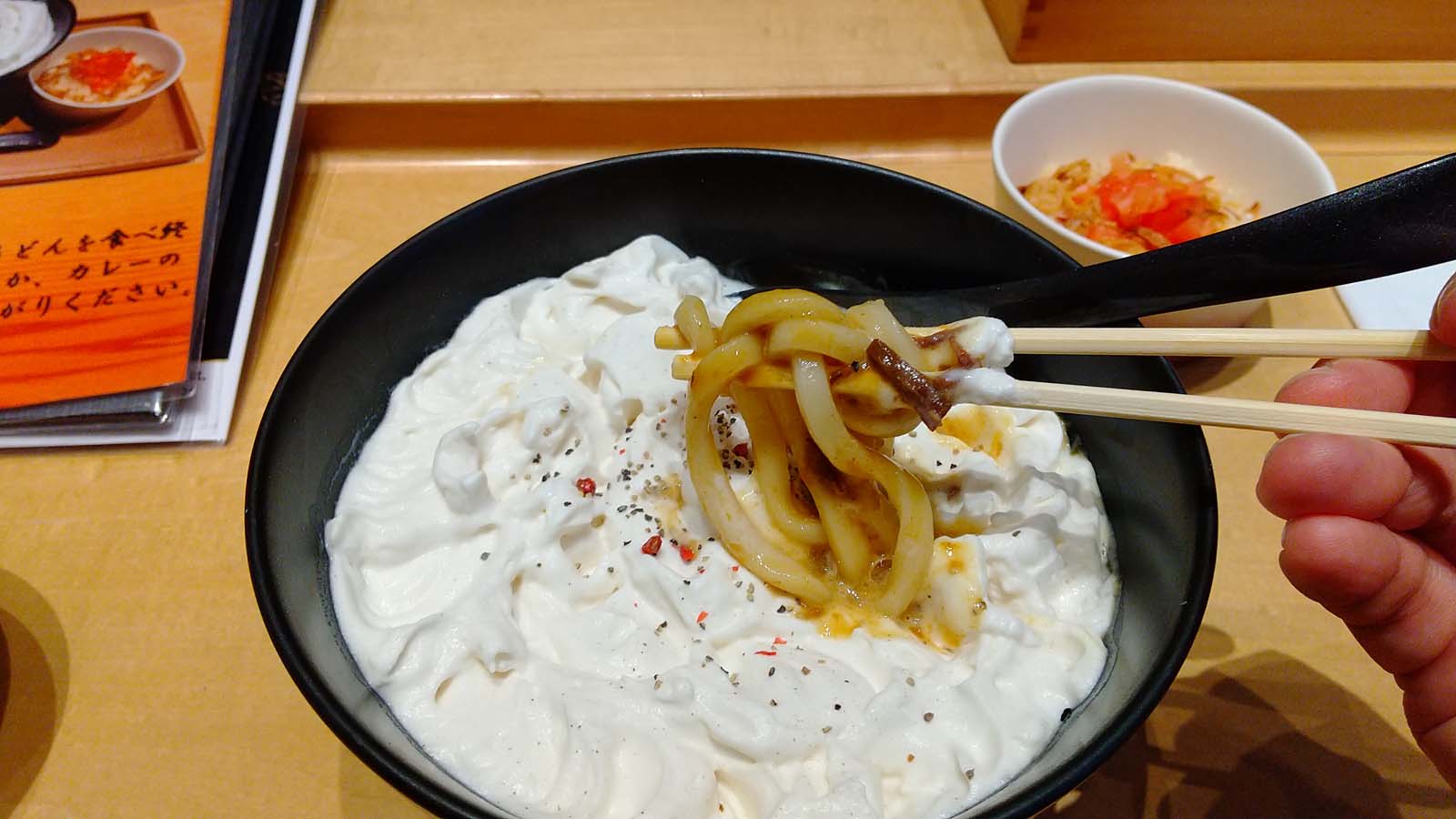初めて白いカレーうどんを食べましたが、白いのがじゃがいものムース!!
