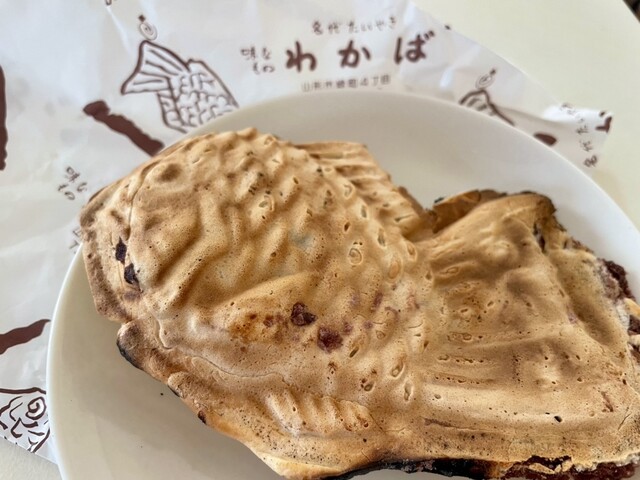 オリジナルの型によって1つ1つ丹念に焼かれた「たいやき」は、パリッと香ばしく、しっぽには「わかば」と店名が入っています。